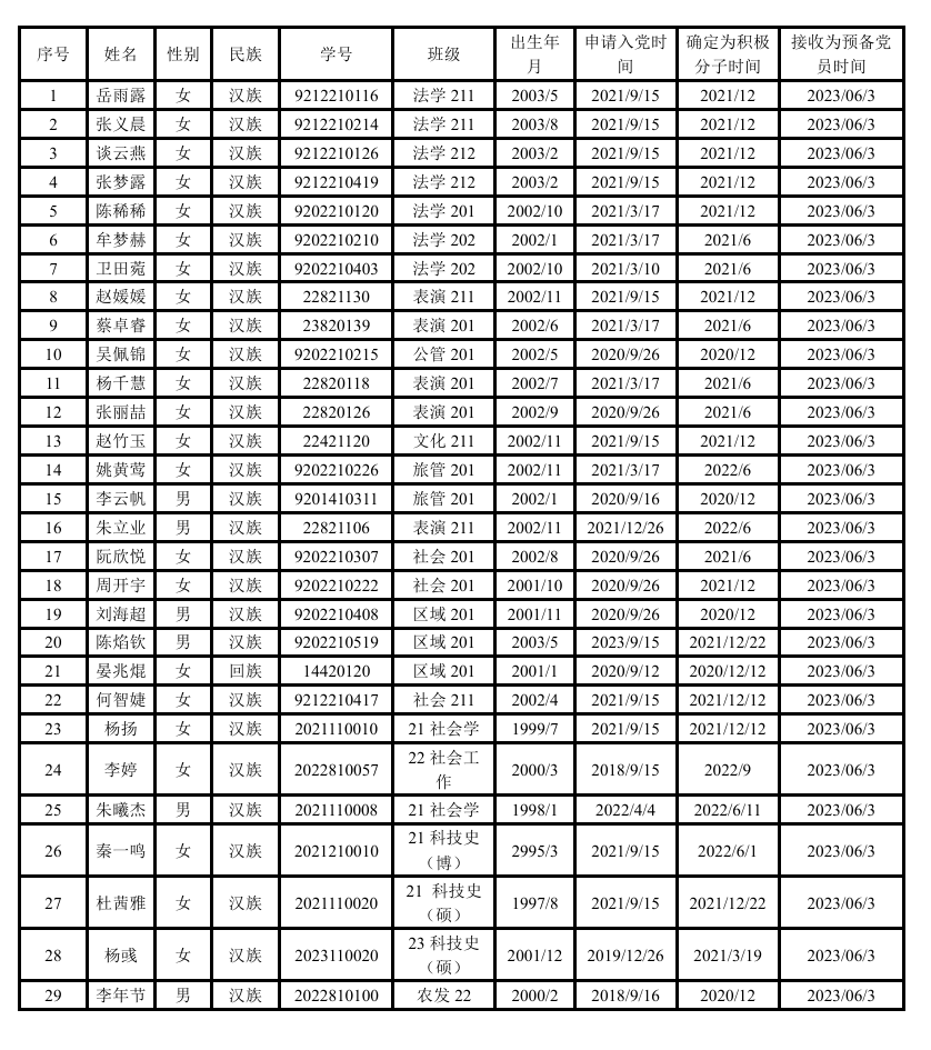 公示时间为即日起7天内(6月3日—6月9日),凡对上述同志转正有异议,请以书面的形式向学院党委反映。