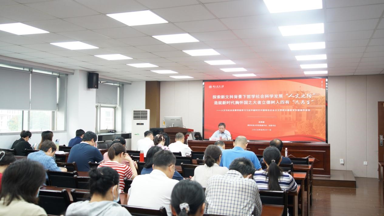 开展主题教育活动,邀请学校党委副书记、纪委书记吴荣顺作 “探索新文科背景下哲学社会科学发展‘人文之路’,造就新时代胸怀国之大者立德树人四有‘大先生’”专题辅导报告。学院党委书记李日葵、院长卢勇、党委副书记冯绪猛、副院长戚晓明,及各系主任、教师党支部书记、教师代表等70余人聆听了报告。报告会由李日葵主持。