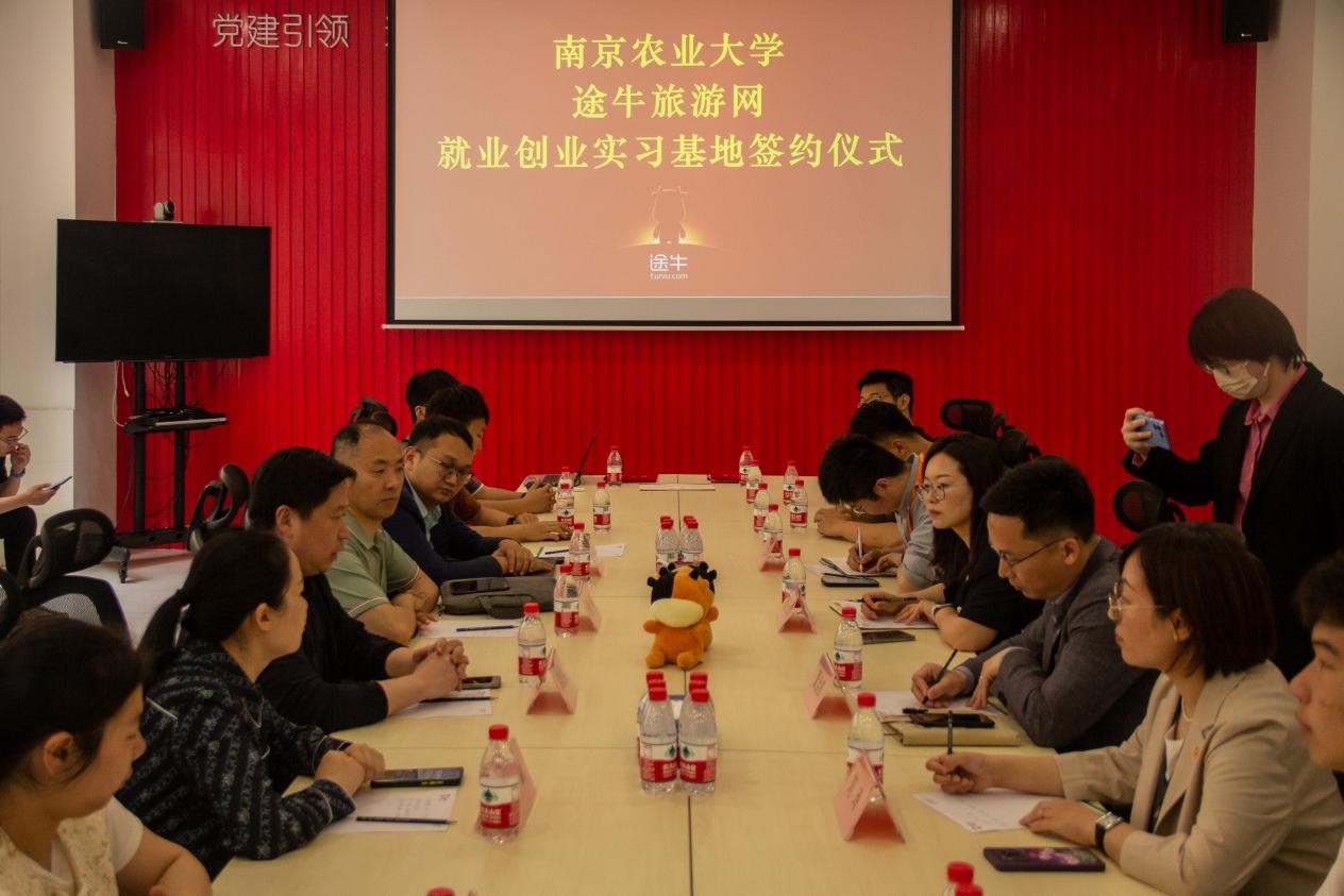 途牛旅游网金融及公共事务负责人董全权、人力资源中心大政委曹玉斌、度假部产品负责人乔成伟、人力资源中心人事总监刘玲、人力资源中心HRBP王龙华等领导出席校企座谈会。冯绪猛与董全权共同签署济州岛赌场