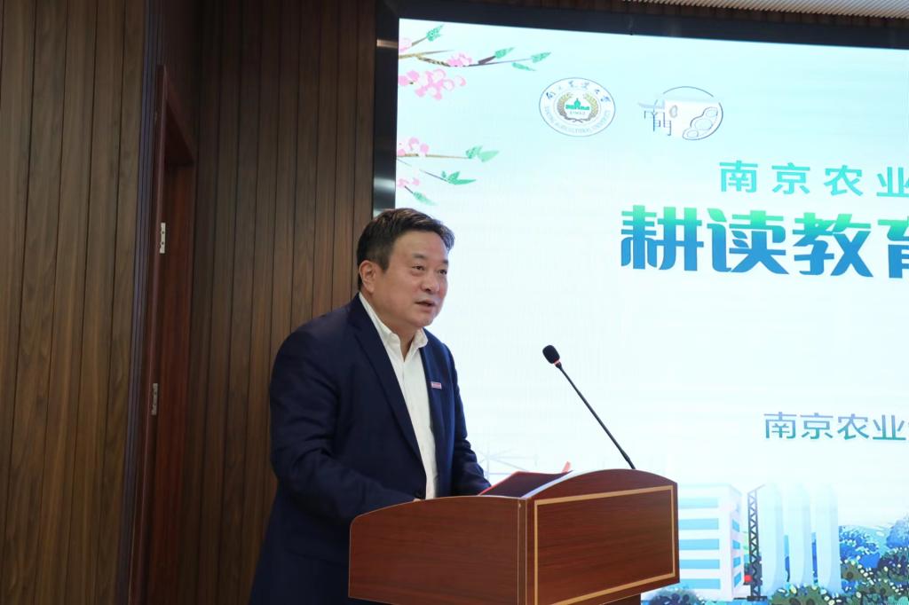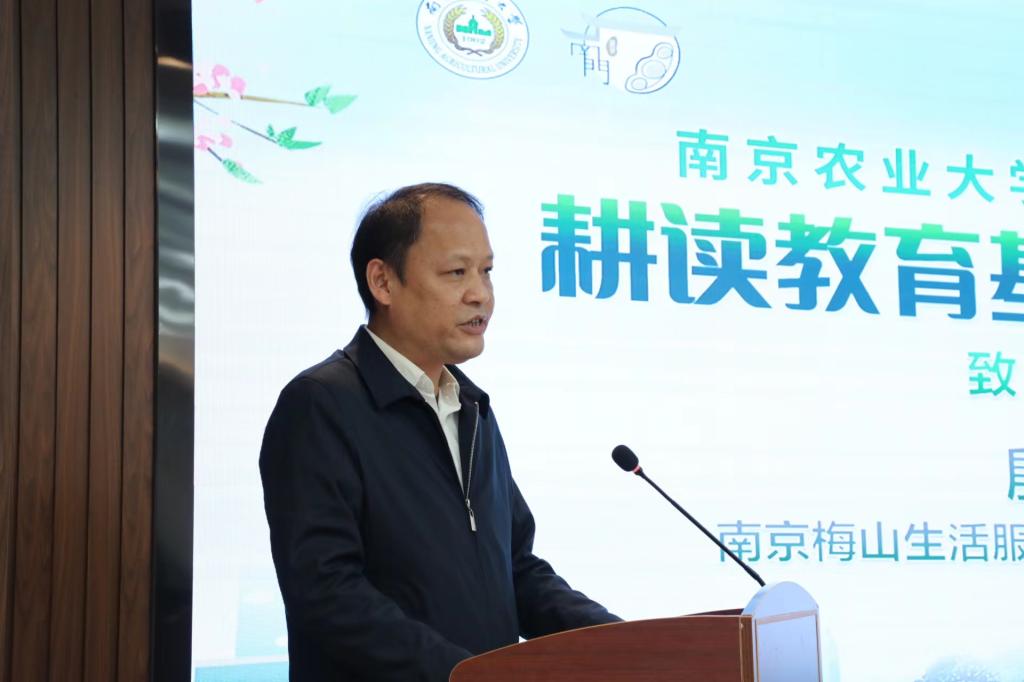 雨花台区人大常委会副主任艾长青首先对基地共建表示祝贺;随后,对双方在助力乡村振兴、发展第三产业、推动产业融合等方面做出的贡献表示了肯定;最后,希望共建双方充分主动发挥自身优势,实现资源共享、优势互补,并表示作为政府部门,也将积极发挥好政策引导作用,支持企业与学校、学校与政府、企业与政府搭建更好的交流沟通平台,促进多方合作共赢;进一步倡导劳动教育,实现青少年儿童全面发展目标,全力助推乡村振兴战略和高素质人才培养战略,在新时代中国特色社会主义思想的引领下,团结协作,共同为中国式现代化建设作出努力和贡献。