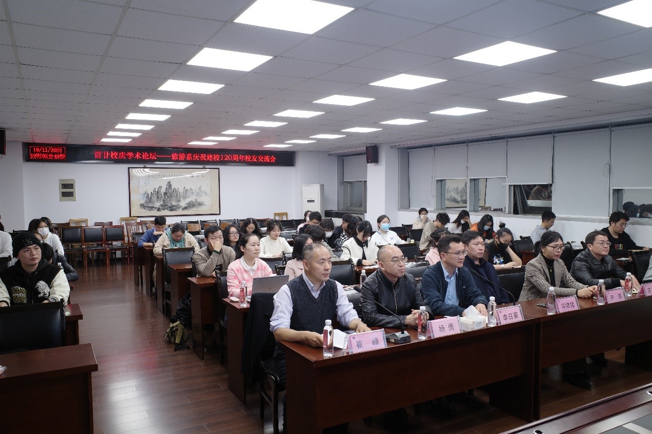 6047报告厅隆重举行庆祝建校120周年校友交流会。学院党委书记李日葵,副书记冯绪猛,校友总会旅游管理专业分会会长、江苏埃德伯格电气有限公司董事长杨勇莅临现场,旅游管理系主任崔峰、党支部书记尹燕、分会秘书长黄颖及苏静、高海连老师与在校学生共40余人线下参会,教务处副处长丁晓蕾,马克思主义学院吴国清,旅游管理系刘庆友、院玲玲、殷志华、翁李胜等老师与各届校友通过腾讯会议方式线上参会。交流会由崔峰主持。