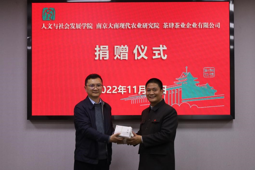 共建捐赠表示热烈欢迎。他表示,双方合作由来已久,拥有良好的基础,对南京大南现代农业研究院和茶肆茶业有限公司的企业精神和文化积淀表示赞赏,希望通过与两家公司的合作共建,促进校企间的融合,造就更加良好的合作局面。