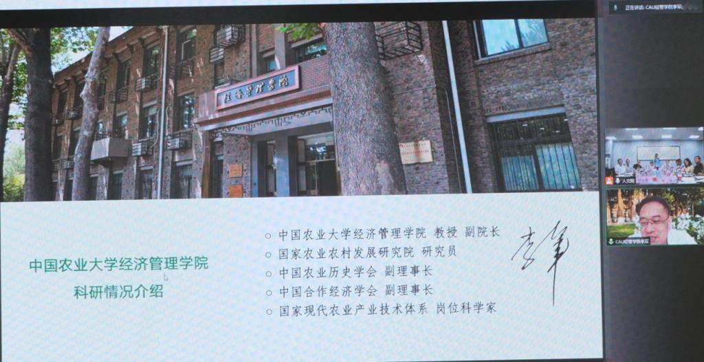 园艺学院党委书记韩健、中国农大经济管理学院副院长李军应邀分别参加了线下和线上会议。会议由院长卢勇主持。
