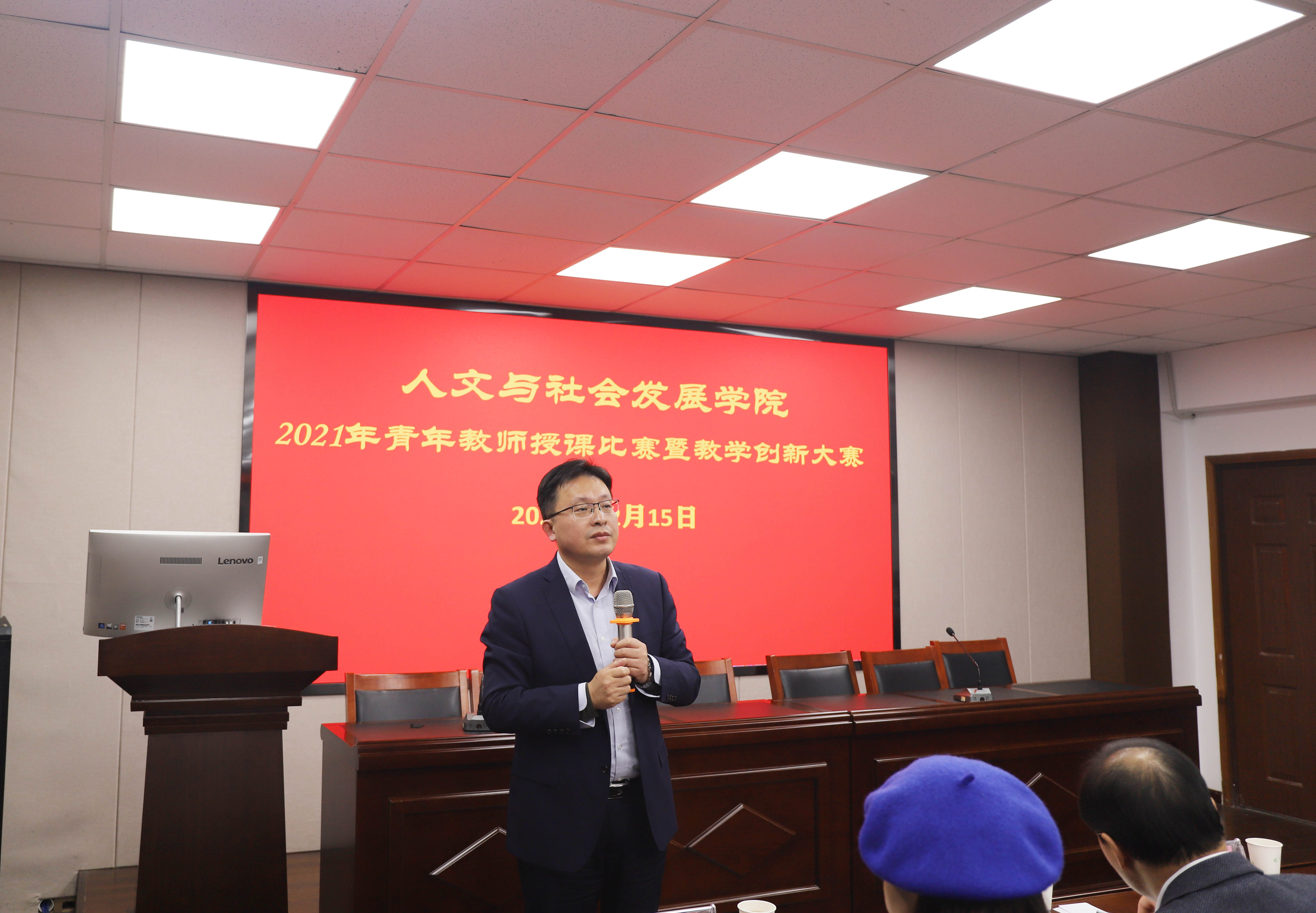 2021年青年教师授课比赛暨教学创新大赛在逸夫楼6047会议室隆重举行。学校教务处处长张炜,学院院长姚兆余、副院长路璐、副院长朱利群、社会学系主任戚晓明、旅游系主任崔峰、文化管理系主任李明、农村发展系主任余德贵、法律系主任孙永军、艺术系主任周辉国、科技史系主任沈志忠担任评委。学院青年教师现场观摩学习。艺术系王菲老师担任主持。