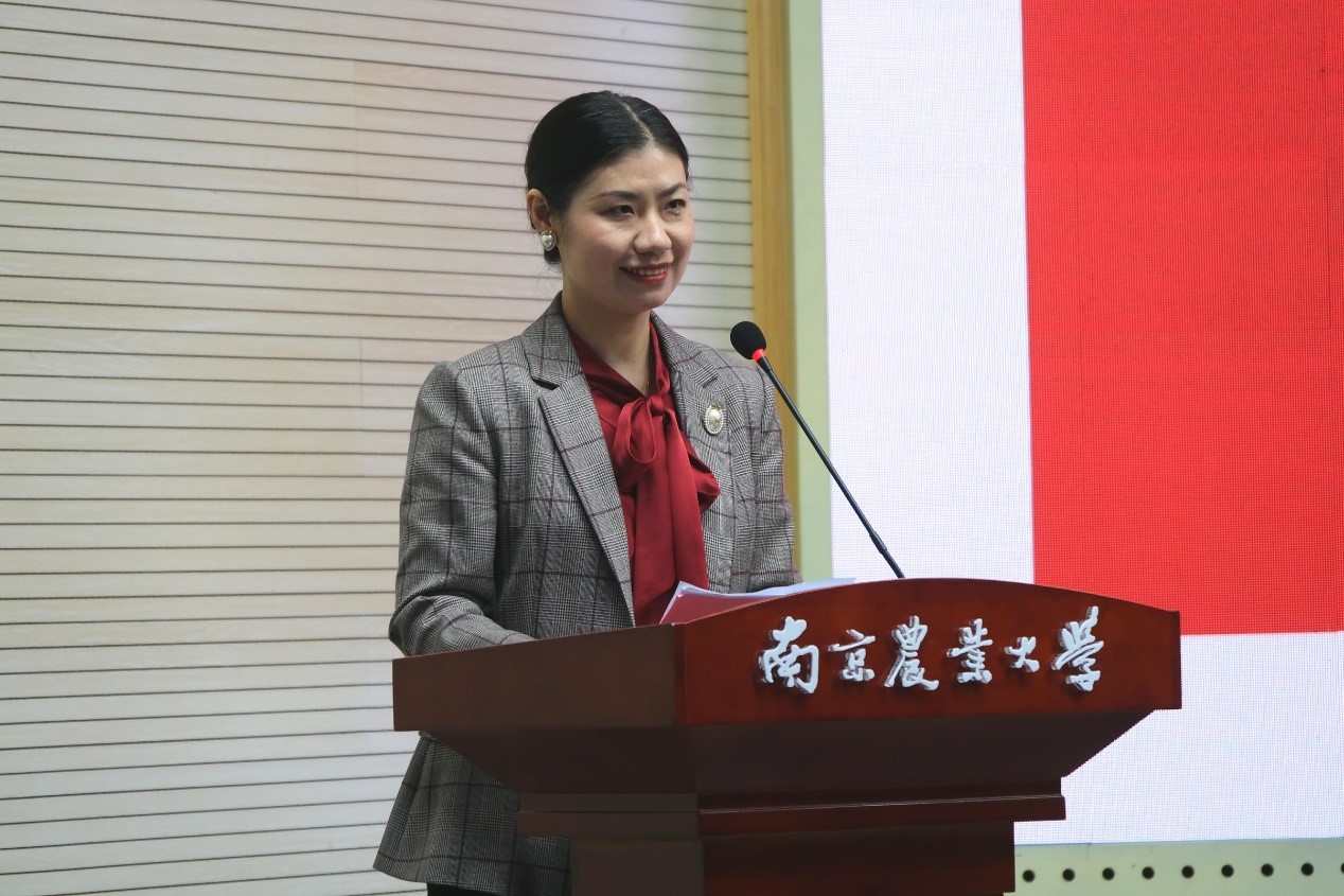 路璐以电影《长津湖》为引言,阐释了南农校训“诚、朴、勤、仁”四个字的具体涵义。她结合自己的研究经历,提出了科研四字“诚、深、守、疑”四字诀,引导同学们做好学术研究,取得更多的研究成果。