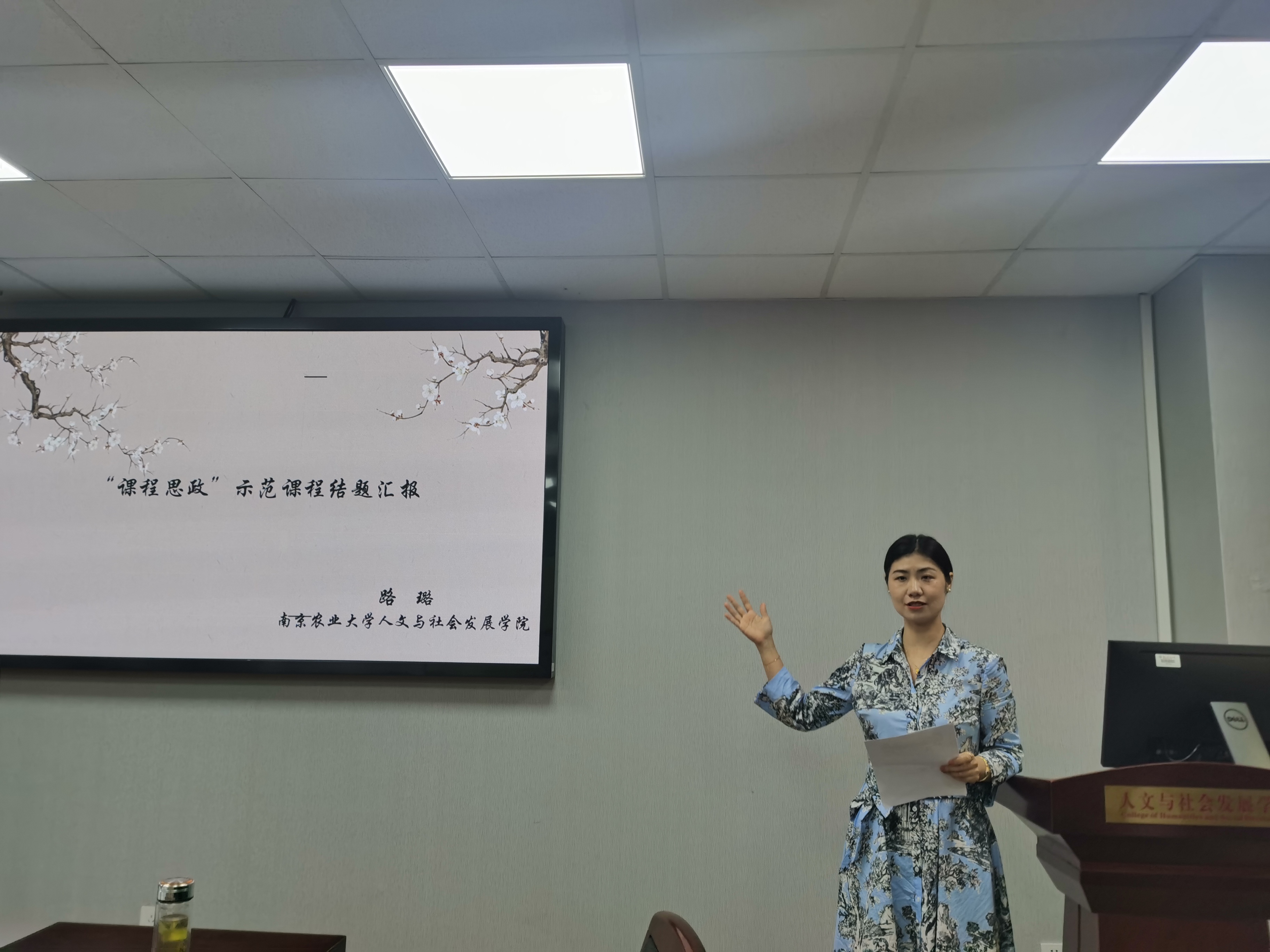 路璐教授对入选首批“课程思政”示范课程的“传播学”进行了项目结题汇报。她围绕课程建设计划及完成情况、课程建设前后对比、课程改革的典型案例、课程建设成果等四个方面对课程建设情况作了详细介绍。