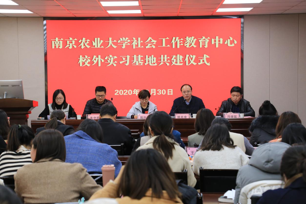 学术报告厅隆重举行。学校研究生院学位办公室副主任朱中超,学院党委书记姚科艳,学院院长、MSW教育中心主任姚兆余,学院党委副书记冯绪猛,社会学系部分教师,以及来自南京市10家社会工作服务机构负责人和项目主管出席了会议。仪式由社会学系主任戚晓明教授主持。