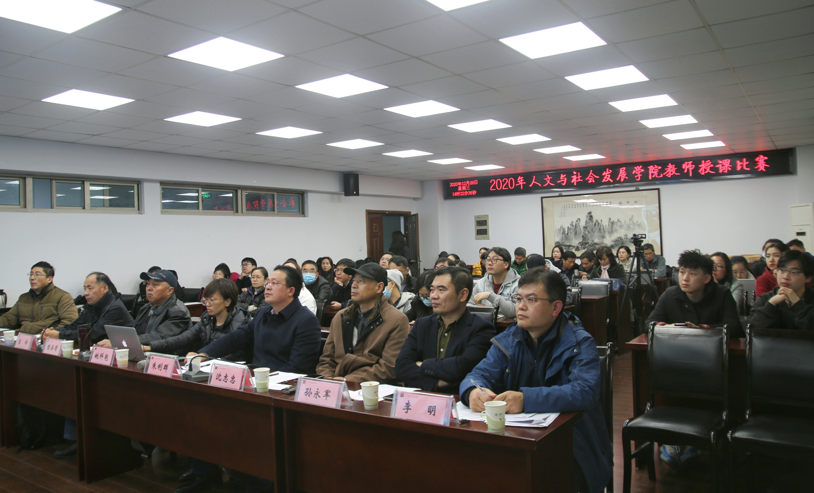 2020年度青年教师授课比赛暨教学创新大赛在逸夫楼6047室隆重举行。学院党委书记姚科艳、副院长朱利群、科技史系主任沈志忠、社会学系主任戚晓明、旅游管理系主任崔峰、文化管理系主任李明、法律系主任孙永军、艺术系主任周辉国担任本次评委。学校教学督导陈圣甫老师作为特邀评委。本次比赛由朱利群副院长主持。