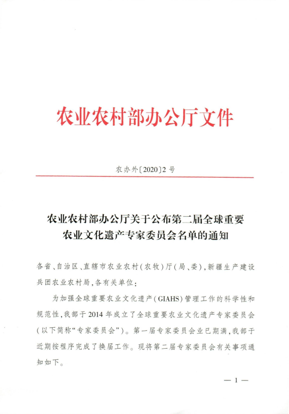 全球重要农业文化遗产专家委员会成立于2014年,主要为我国全球农业文化遗产(GIAHS)制度建设提供管理咨询与政策建议,是我国农业文化遗产领域内最权威的咨询团体与学术荣誉之一。专家委员实行任期制,每届任期5年,第二届共遴选出43位该领域权威专家担任此职务。