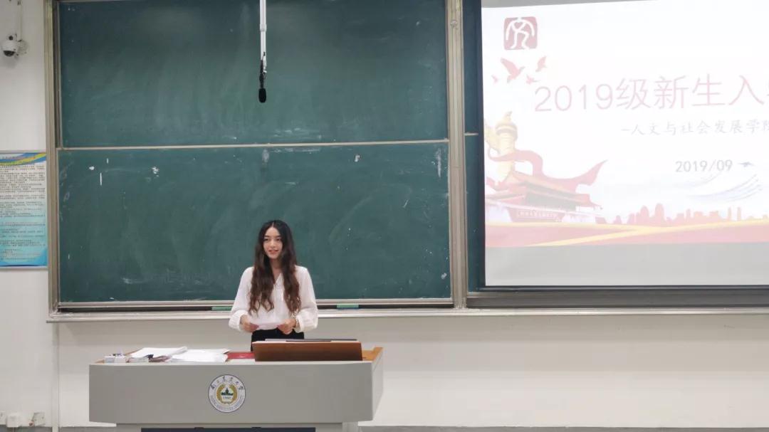 随后,老生代表张海梅同学以及新生代表张育菲同学发言。张海梅同学表达了对2019级学弟学妹们的三点祝愿:一是希望大家铭记目标,砥砺前行;而是希望学弟学妹们不惧忙碌,敢于尝试;三是希望大家能够静守己心,不忘初心。2019级新生张育菲同学回顾了两周以来的军训生活,表达了自己对大学生活的憧憬以及期望,她表示,全体大一新生必将”不忘初心,牢记使命”,砥砺前行。