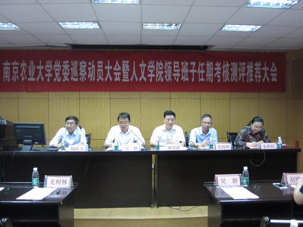 领导班子任期考核测评推荐会在逸夫楼6047召开。校党委副书记、纪委书记、巡察工作领导小组副组长盛邦跃,校纪委副书记、巡察工作领导小组办公室主任尤树林出席大会,校组织部部长、巡察组组长吴群,巡察组、考核组的其他成员出席了大会。学院全体党政领导干部、教职工,离退休人员代表,学生代表也参加了大会。大会由院党委书记朱世桂主持。