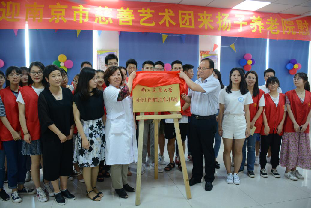 社会工作研究生实习基地共建仪式在南京扬子养老院隆重举行。学院副院长姚兆余教授、社会学系主任戚晓明副教授、艺术系支部书记李燕副教授、原江苏省老龄办应启龙主任,与扬子养老院田丽萍院长等领导一起参加了共建活动。