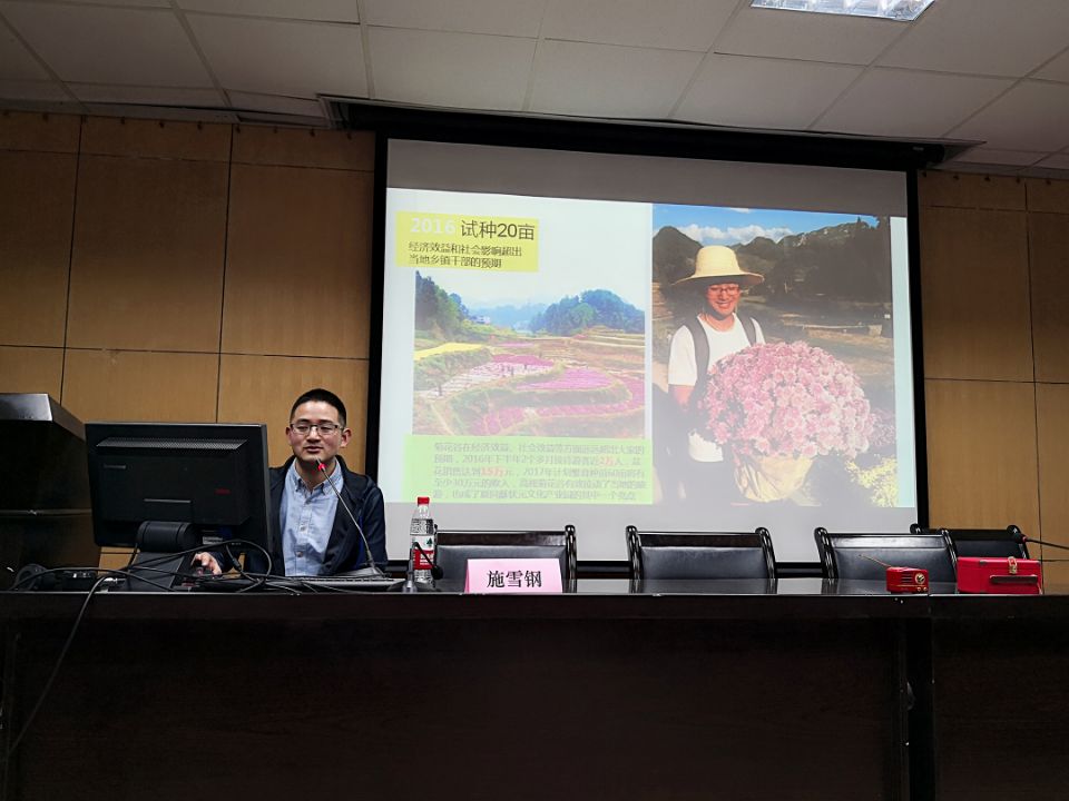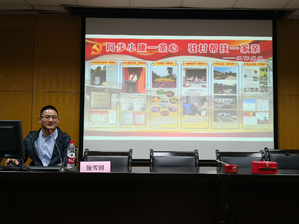 在党课中,施处长在回顾担任第一书记的经历同时,还给在座的各位师生及时总结了关于美丽乡村建设、乡村旅游新景区建设的经验,并对将来有志参与扶贫工作的师生给出了较好的建议。扶贫工作一定要取得学校、当地政府、当地老百姓的支持,结合地方气候、区位、人口、经济、民俗等特点,找到可以突破的优势产业,找准自己在产业发展中扮演的角色。遇到困难时,绝不低头,要做好失败的心理准备,屡战屡败、屡败屡战,最后终会成功。