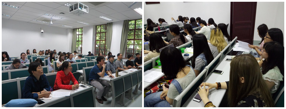 2017年5月25日下午2点,旅游管理系专业实习汇报会在主楼120教室举行。旅游管理系主任崔峰、旅游管理系党支部书记黄颖、专业教师陆志东、秦淳霞、院玲玲、殷志华、伽红凯以及全体2014级学生参加了此次报告会。