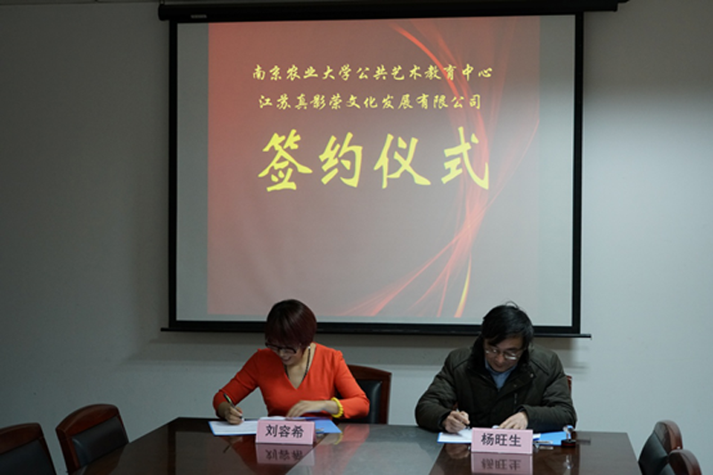 唐圣菊副教授,公共艺术教育中心办公室主任朱志平出席了签约仪式。杨旺生院长与真影荣文化发展有限公司的刘容希总经理签订了相关协议。