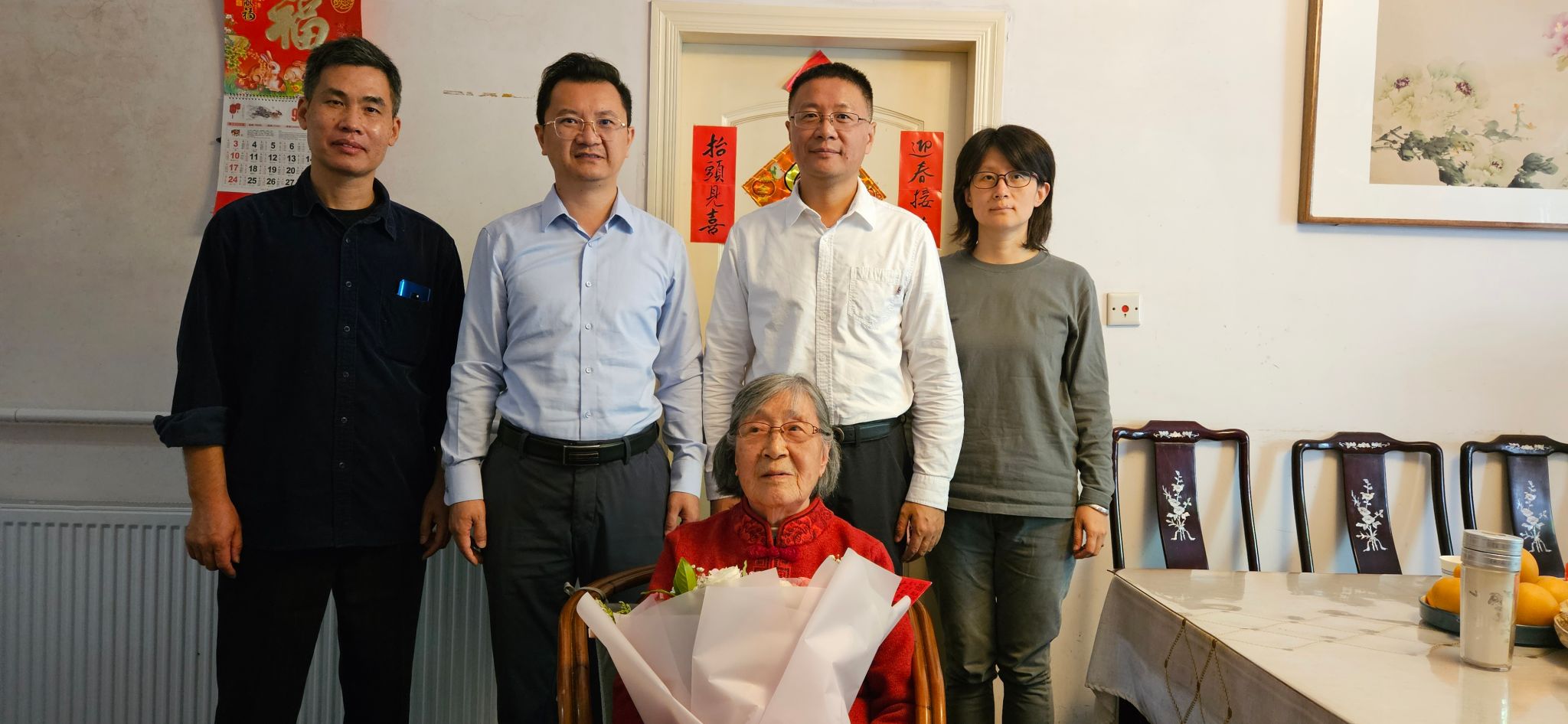 退休教师徐洁明喜逢百岁华诞,10月23日重阳节当天,学院党委书记李日葵、院长卢勇专程看望了徐洁明老师,送上节日问候,并祝福徐老生日快乐、福寿安康、春辉永绽!