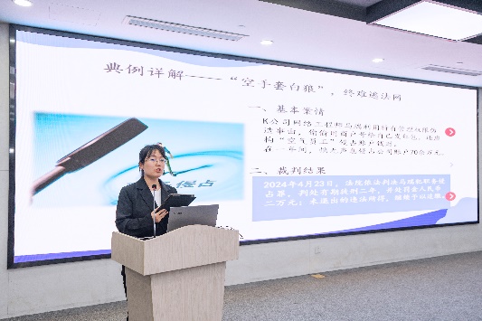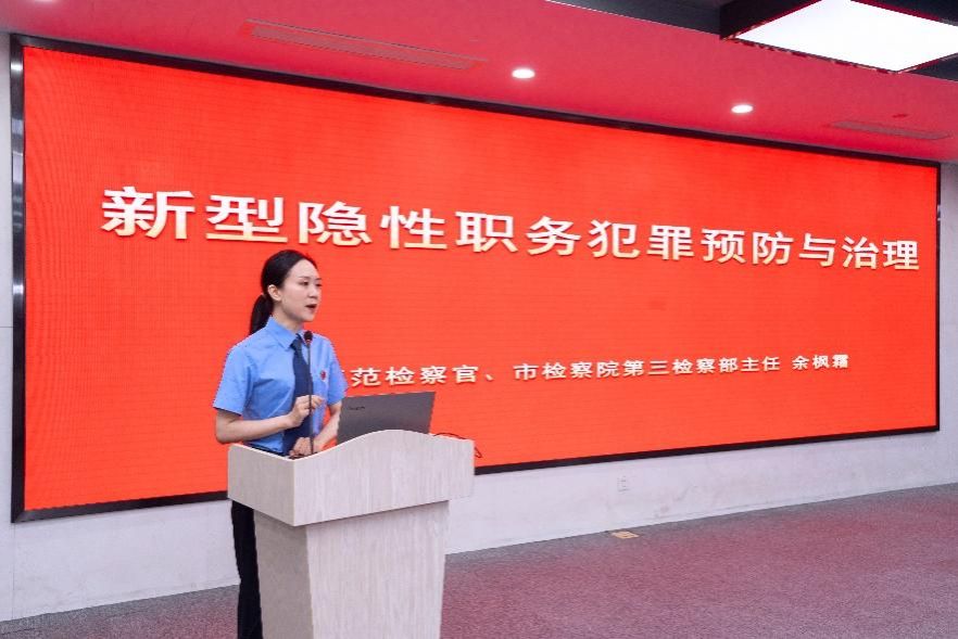 全国模范检察官、市检察院第三检察部主任余枫霜以《新型隐形职务犯罪预防与治理》为题,讲授党纪学习教育专题党课。通过从一个个活生生的案例中剖析了犯罪的根源,从贪婪心理、侥幸心理等方面分别举例说明犯罪的原因。使大家在思想行动上进一步自觉筑牢“拒腐堤坝”,严把人情关、权力关、金钱关,知法纪、节心欲、慎交友、管好人,敬畏法律,远离职务犯罪。