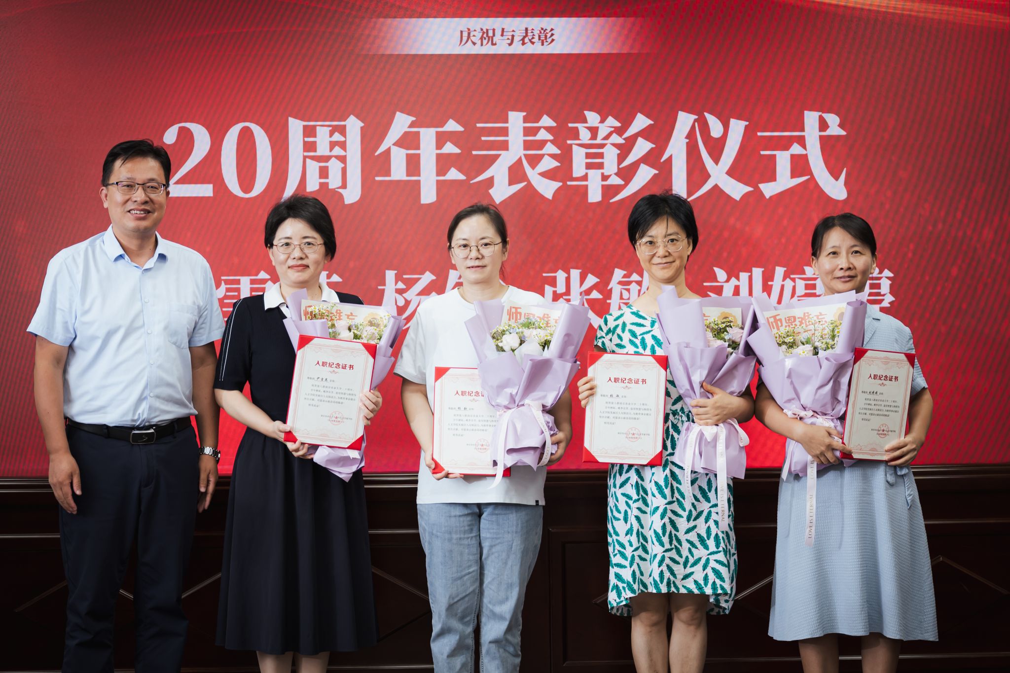 20周年表彰教师(从左至右):尹雪英 杨钦 张敏 刘婷婷