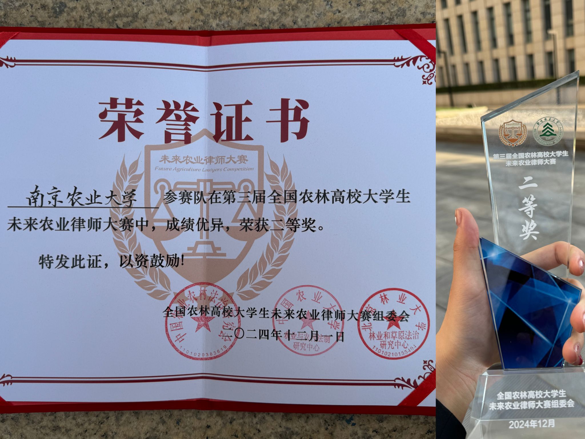 由张梦婷、吴佳奇、董书源、康钿苓、王卓玥、陈思(研究生)6名本、研学生组成的代表队,在法律系系主任孙永军、专业教师尹雪英带队指导下,最终斩获全国二等奖,并获“最佳文书”荣誉称号。