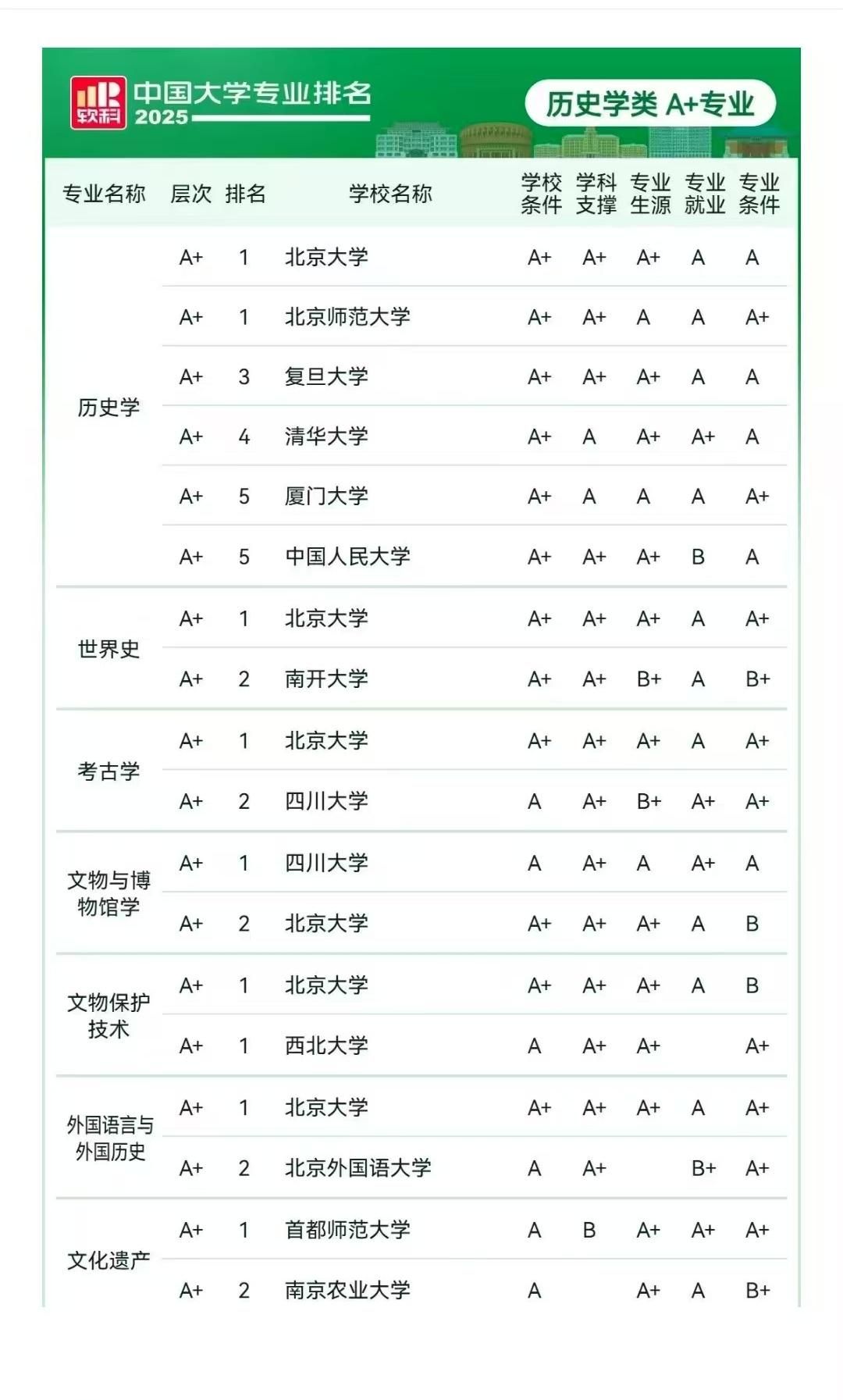 科学技术史系“文化遗产”本科专业连续三年(2023、2024年)挺进A+。
