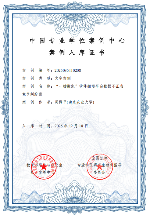 收到全国法律专业学位研究生教育指导委员会通知,法律系周樨平老师撰写的《“一键搬家”软件搬运平台数据不正当竞争纠纷案》教学案例,成功入选中国专业学位案例中心第五批法律硕士专业学位文字教学案例库。
