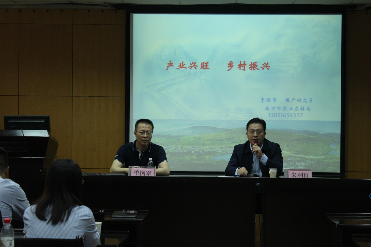 逸夫楼6047室,举办了第三期乡村发展系列讲座——“关于‘产业兴旺’的几点思考”,本次讲座主讲人为南京市农业农村局种植业处季国军处长。季国军处长重点围绕如何进行乡村规划以及如何实现产业兴旺等方面问题进行了生动的讲演。