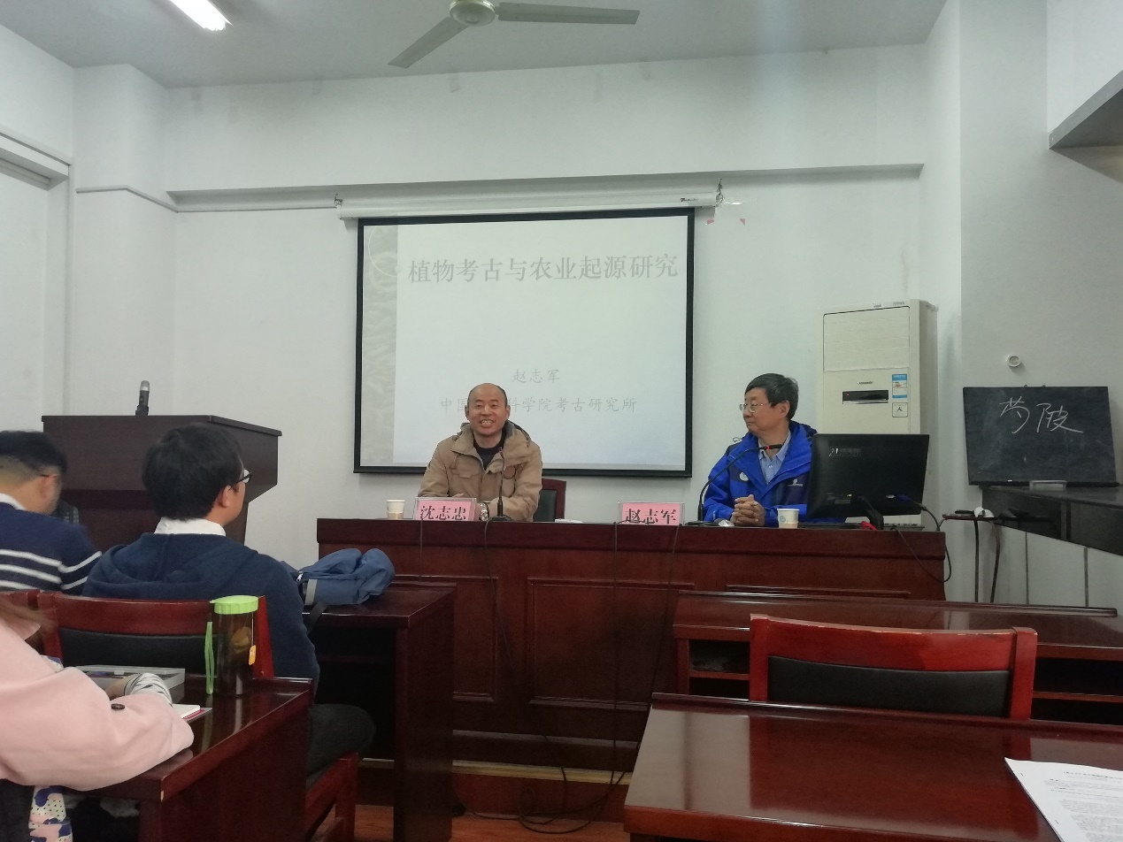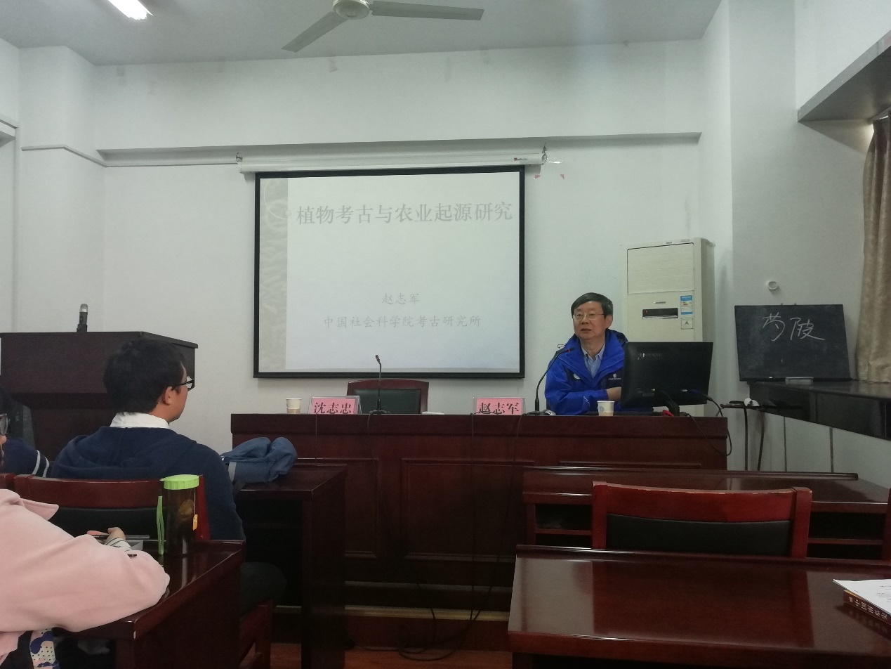 报告伊始,沈志忠教授代表全院师生对赵志军研究员的到来表示热烈欢迎,并对赵研究员进行了简短的介绍。赵志军研究员表示,由于自身从事考古研究,因此,本次讲座将从考古学的角度来讲述农业的起源。首先,赵研究员为我们解释了什么是植物考古。他认为植物考古是通过考古发掘发现和分析古代植物遗存来认识和了解古代人类与植物的相互关系,进而复原古代人类生活方式和解释人类文化的发展过程。接着,赵研究员为我们重点介绍了哈兰提出的农业起源中心区的观点。他指出,世界有西亚、中南美洲、非洲、中国四个农业起源中心,每个农业中心都贡献出了很多的农业及经济作物物种,驯化了不同的动物,为人类的发展做出了重大贡献。最后,赵研究员为这次讲座做了总结,他认为农业起源是个漫长的演变过程,而不是一个社会变革。在这个过程中,采集狩猎在社会经济生活中的比重日渐衰微,农耕生产的比重不断增强,最终农业取代采集狩猎成为经济社会的主体,人类社会发展迈入农业社会阶段。随后,赵研究员热情地为在座的师生解答了关于此次讲座的问题,并做了简短的交流讨论。