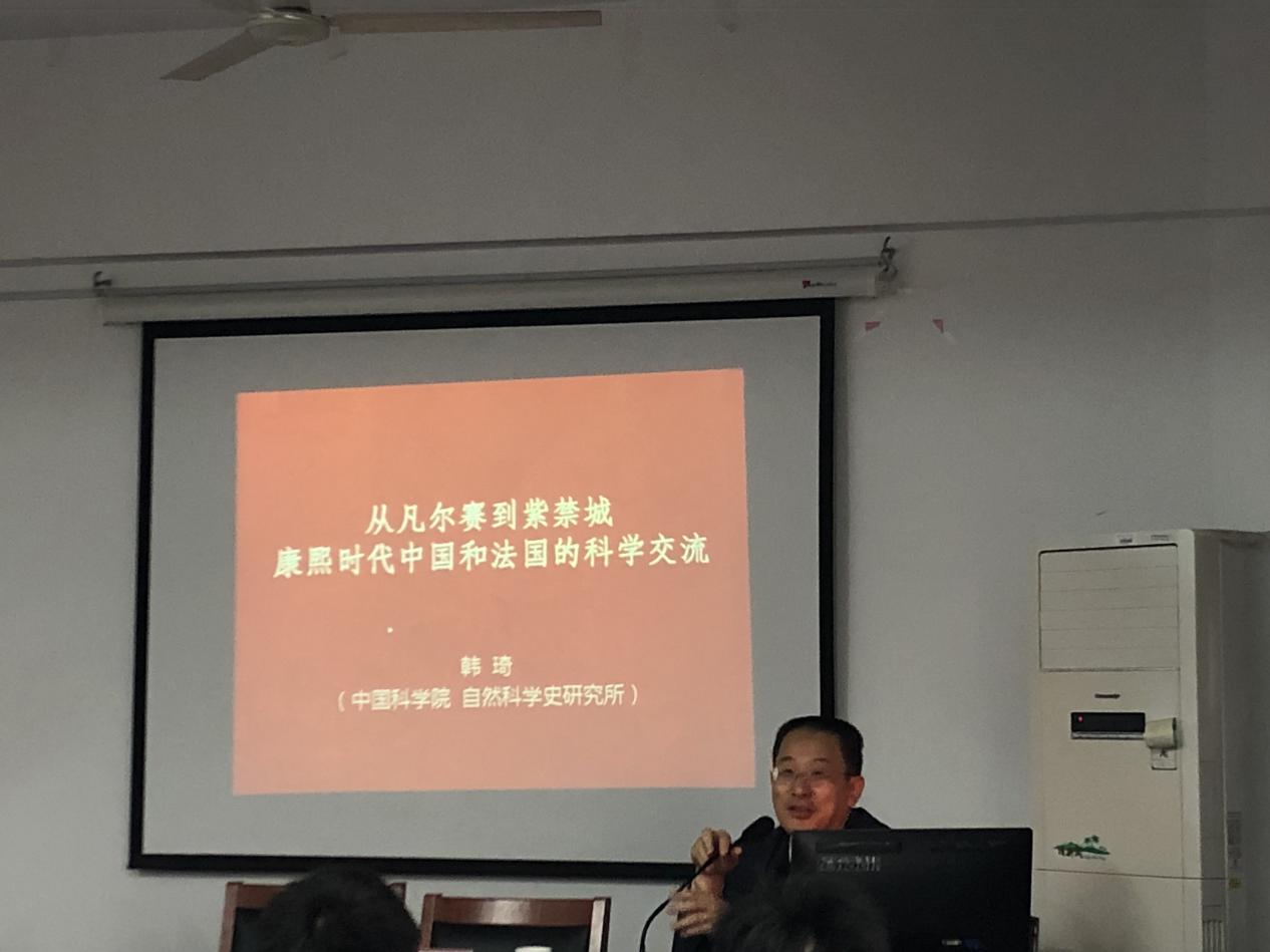 报告伊始,沈志忠教授代表全院师生对韩琦教授的到来表示热烈的欢迎。韩教授首先为同学们介绍了中法两国在清朝时期的科技状况以及康熙皇帝和路易十四国王对科学的热爱。同时,韩教授指出,两位帝王均为这一时期科学的发展作出了重要的贡献。韩教授认为中国科学“近代化”失败的主要原因是政治和权术阻碍了科学的传播,从而导致中国在近代的科学发展中处于落后的位置。随后韩教授针对同学们提出的问题进行了耐心的解答。