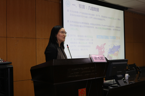 孙九霞教授首先从国际、国内几组数据出发,通过大量社会现象的分析,指出全方位流动是现代社会的新常态,包括流动的景观、流动的城市和流动的生活;进而将大家的思路引到旅游流动性的相关研究,并对旅游研究的“流动性范式”及相关议题进行了深入浅出的介绍。孙九霞教授认为,旅游流动性研究应关注主体流动中的旅游体验,未来研究需更加强调采用动态化视角对“流动实践”微观过程的分析,并深化流动性范式对实证研究的理论指导性;最后,孙九霞教授介绍了其团队近期开展的有关旅游流动性相关研究专题。丰富的讲解内容以及与大家生活密切相关的微观实证研究,引起了在座师生的浓厚兴趣。
