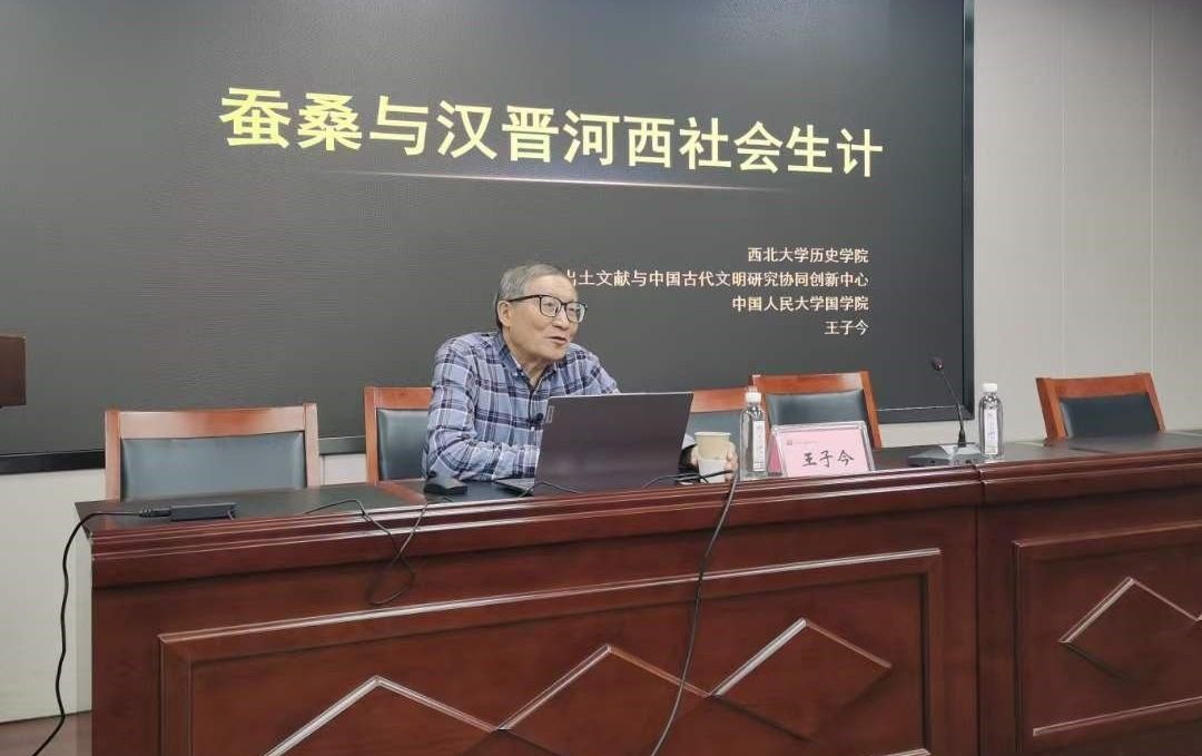 王子今教授首先从黄帝、嫘祖的发明与“轩辕台”“轩辕丘”的传说讲起,说明黄帝的成就不仅包括农业生产、矿业开发,还涵盖了“淳化鸟兽虫蛾”等全面的资源开发与利用,依据山西夏县师村遗址发掘出的石制蚕茧等考古发掘可证明我国黄河流域和长江流域早在五千年前便已开始养蚕。又利用《史记》《氾胜之书》等传世文献中的记载表明两汉时期关中地区的蚕桑业已经发展到较高程度。随后以《嘉峪关酒泉魏晋墓壁画》《临泽黄家湾汉晋墓发掘报告》《悬泉汉简》等出土材料为基础,旁征博引又深入浅出地论述了汉晋时期河西地区桑蚕或已得到了普遍种植,同时丝织品在河西地区的大量出土,干桑、桑螵鞘等中药材的充分利用都体现了当地桑蚕业及丝织业已经发展出较完备的体系。最后,以上述内容为基础王子今教授总结道,汉晋河西地区的蚕桑业、丝织业已经发轫并获得初步发展,同时河西地区还成为丝织品和桑蚕技术传往西域的必经通道和前进基地,为我国蚕桑业的发展与传播做出突出贡献。