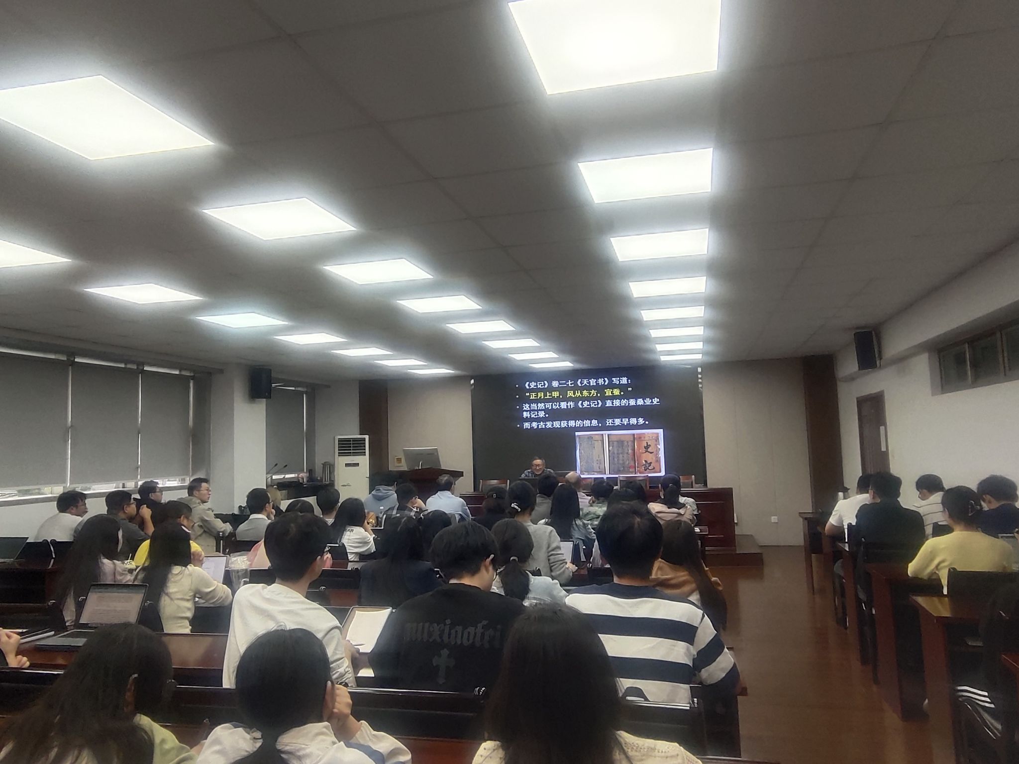 讲座共两个多小时,王子今教授循序渐进的讲解让在场的师生收获颇丰,在师生诚挚而热烈的掌声中本次讲座圆满结束。王子今教授也就学生提出的“魏晋壁画墓中跪坐采桑图是否带有官方亲耕之意”等问题一一耐心解答。讲座结束后,沈志忠教授对本次讲座作了总结评议,代表学院感谢王子今教授为我们带来了一场精彩的讲座。