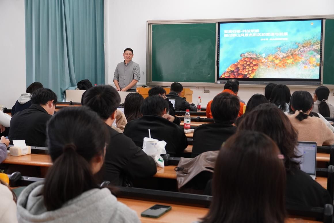谈宇星以《智慧引领·科技赋能:探讨钟山风景名胜区的管理与发展》为题进行了深入的分享。他结合自己多年的实践工作经验,从生物多样性保护、文物保护、环境卫生、扫雪防冻、票务管理、导游服务、志愿服务、交通管理等多个维度探讨了钟山风景名胜区的管理与发展。同时,针对公众高度关注的景区停车场收费、野猪出没等内容,做了关于数据监测、分析论证到策略制定的全流程实战分享。此外,他还以中山陵团队预约系统和大数据分析系统为例,介绍了钟山风景名胜区在应用现代信息技术建设智慧景区方面的探索及取得的成果。谈主任的讲座深入浅出,将理论与实践相结合,让旅游专业学生对景区管理有了更深的理解。
