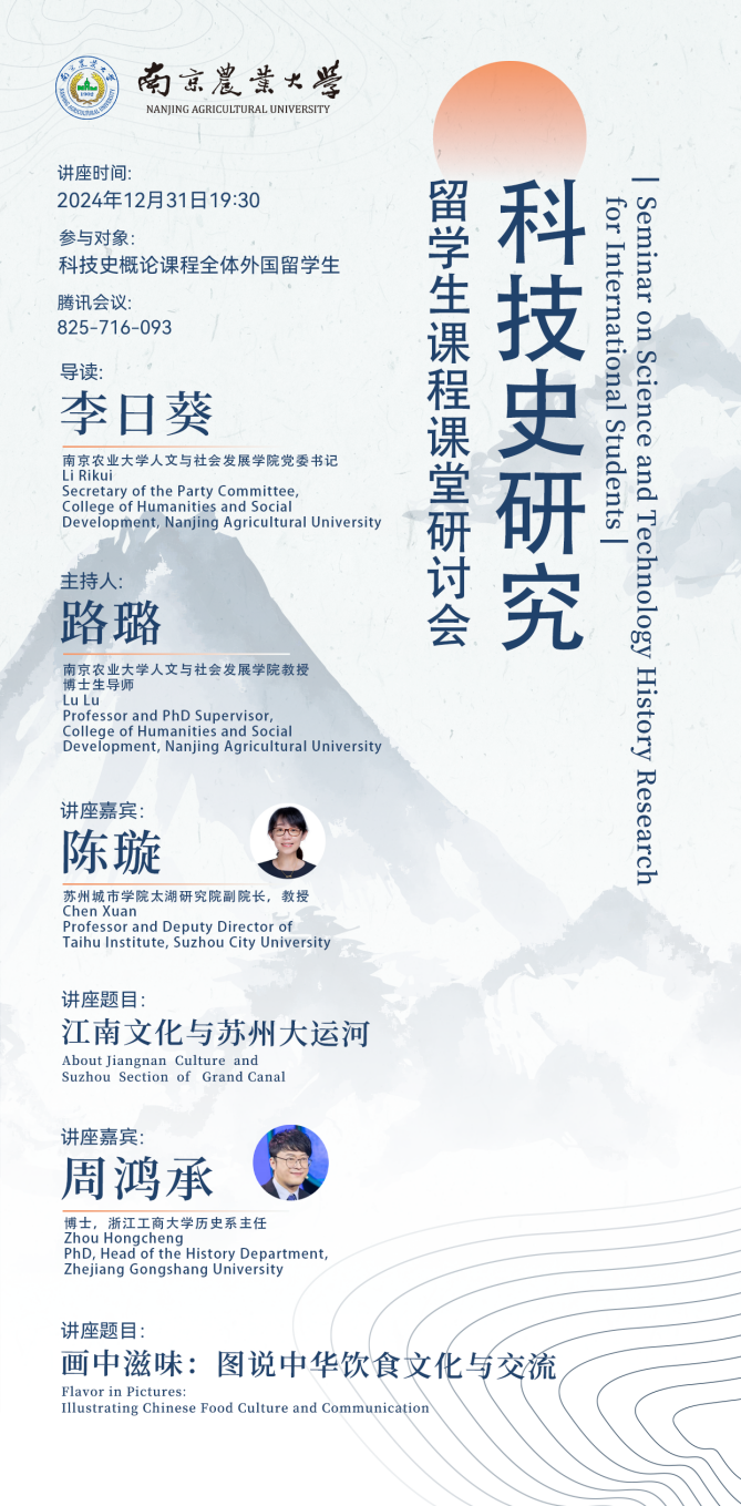 科技史研究课程的“留学生课程课堂研讨会”顺利举行。本次研讨会旨在为留学生提供深入了解中国科技史和传统文化的平台。苏州城市学院太湖研究院副院长陈璇教授、浙江工商大学历史系主任周鸿承教授应邀作了学术讲座。研讨会由济州岛赌场