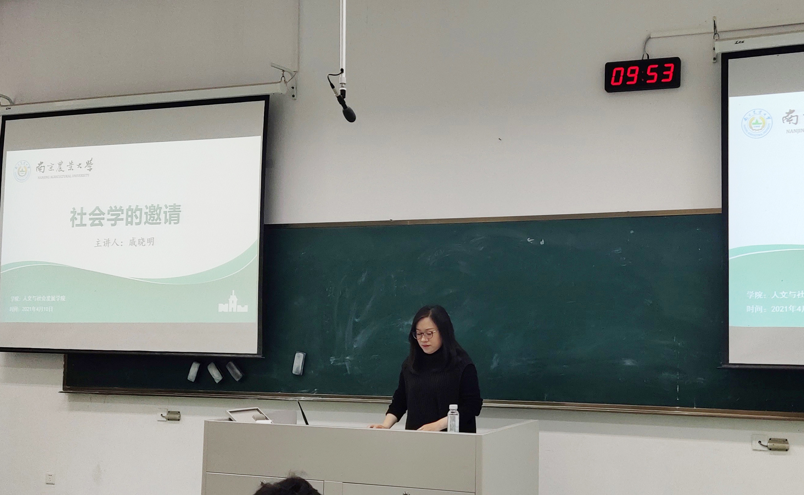 宣讲会分三个环节。第一个环节,戚晓明引导2020级学生思考学习社会学的学科价值和社会意义,生动系统地介绍了南农社会学专业建设、学科建设、师资力量以及研究成果,展示了社会学专业学生的风采,介绍了社会学学生毕业去向,强调了社会学专业对社会实践能力提升及职业多元发展的作用。