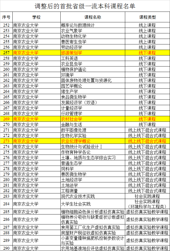 31门课程被认定为第二批省级一流本科课程,我院线下课程《农村社会学》、《旅游策划学》及线上线下混合课程《农业伦理学概论》被纳入调整后首批省级一流本科课程名单。